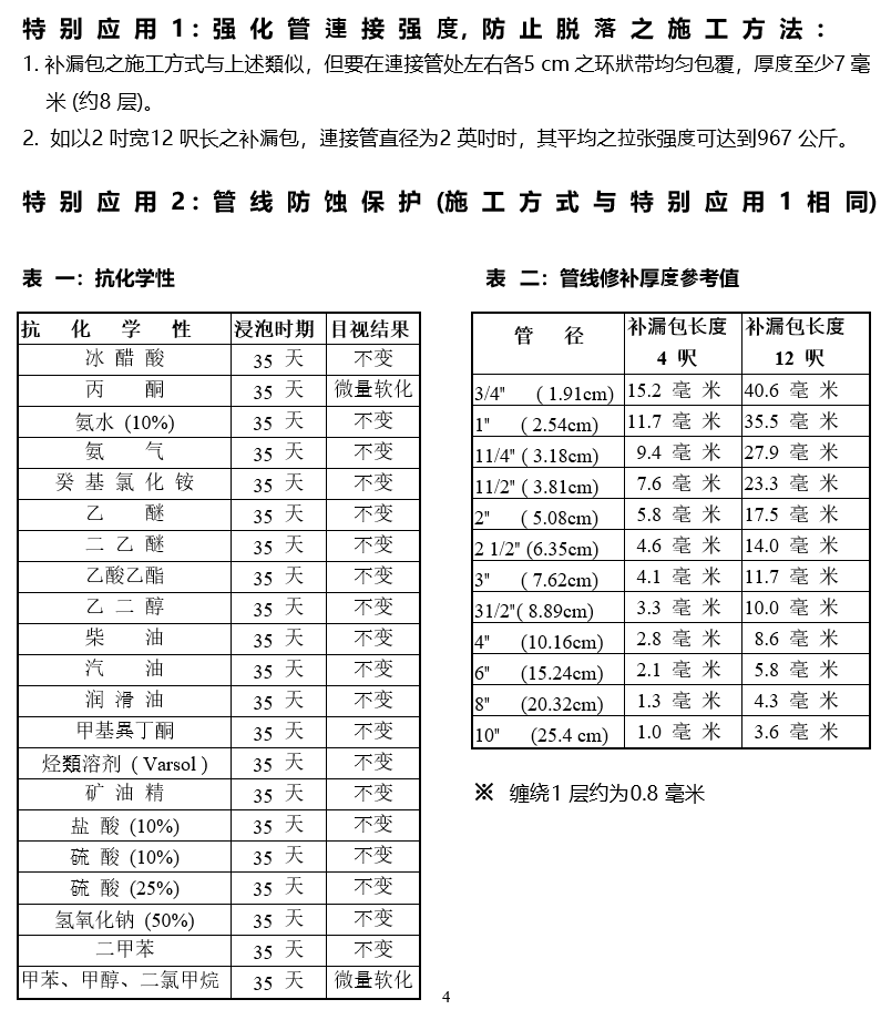 4. 常溫下施工,無須動(dòng)火,無爆炸或火災(zāi)之虞。 特別適用于石油化學(xué)工廠管線破漏時(shí)使用。