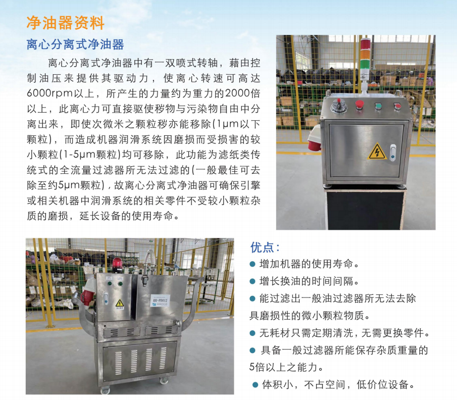 優(yōu)勢: 專利技術(shù)︱在線除渣︱體積小巧︱在線破乳︱移動靈活